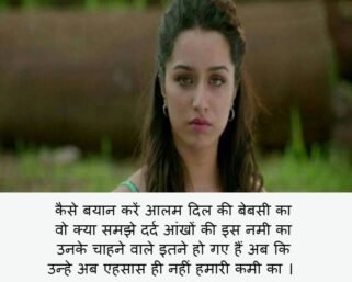 Read Moreउसका वादा भी अजीब था कि जिन्दगी भर साथ निभायेंगे मैंने भी ये नहीं पुछा की मोहब्बत के साथ या यादों के साथ l usaka vaada bhee ajeeb tha ki jindagee bhar saath nibhaayenge mainne bhee ye nahin puchha kee mohabbat k